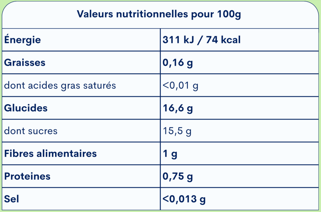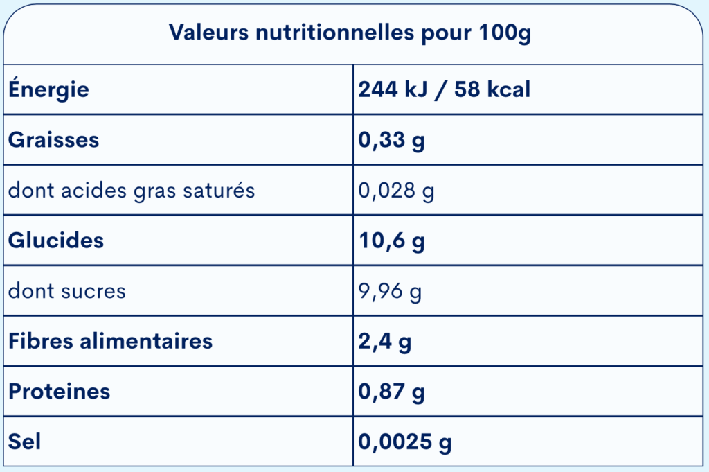 • Après ouverture, conserver au réfrigérateur à 5 °C et consommer dans les 48 à 72 heures.